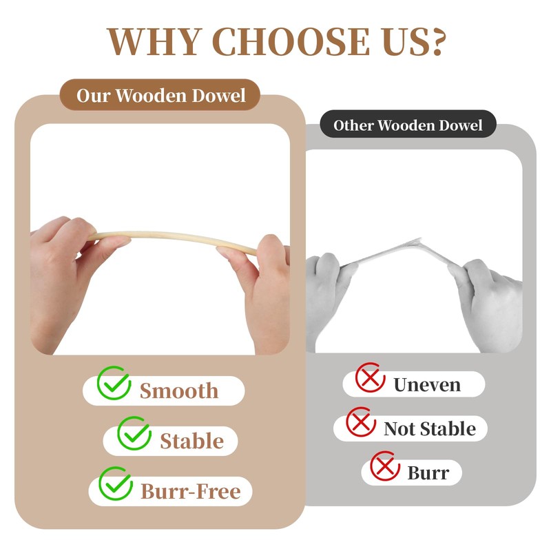 - Quality Material: Our Dowels are made of natural high-quality bamboo to ensure durability, not easy to deform, and resist splitting and fading; You don't need to worry about them breaking or twisting over time.