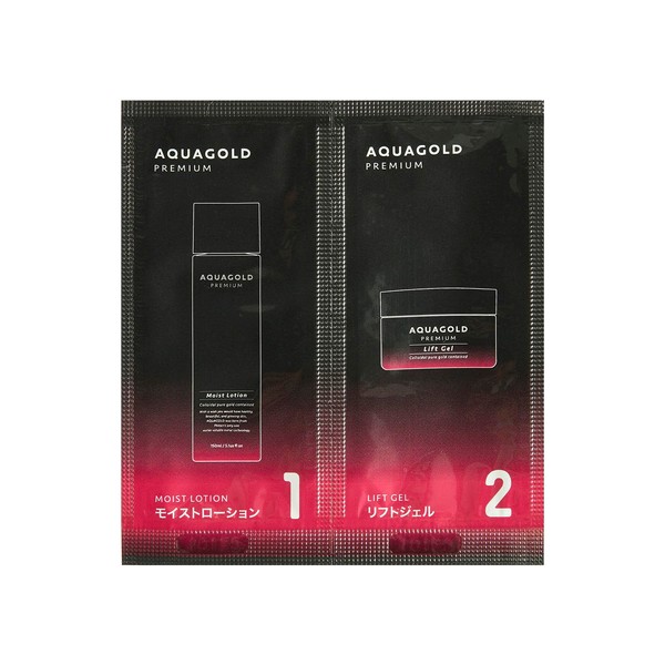 - 内容量:アクアゴールド プレミアム モイストローション(2ml)・アクアゴールド プレミアム リフトジェル(2g) 各1点