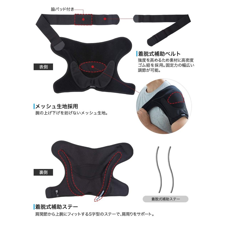 - 素材:表生地/ナイロン93%、ポリウレタン7% 裏生地/ナイロン80%、ポリウレタン20% 脇パッド表生地/ナイロン80%、ポリウレタン20% 脇パッド裏生地/ナイロン93%、ポリウレタン7% 着脱式ベルト/ナイロン80%、ポリウレタン20% 着脱式テープ/ナイロン86%、ポリウレタン14% 面ファスナー/ポリエステル100% 樹脂ステー/ハイトレル