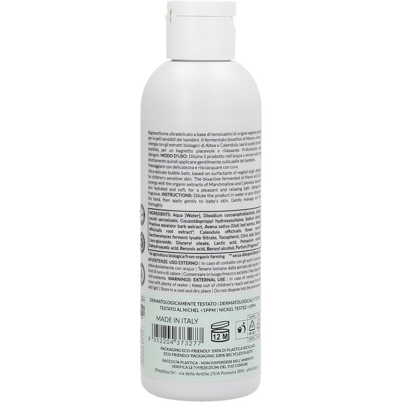The ultra-mild bubble bath is based on botanical surfactants that are ideal for the skin of little ones. Bioactive ferments derived from ash and oats synergy with organic marshmallow and calendula extracts to hydrate and soften the skin. This bubble bath has a delicate, allergen-free scent.