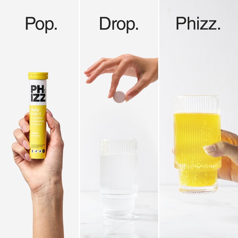 • DIRECTIONS & USE - Simply dissolve 1 tablet in a glass or water bottle. Phizz is ideal for daily hydration and health goals, pre/post exercise, hot climates, travel and jet lag. Phizz is also a great caffeine-free alternative to coffee to avoid fatigue at work or throughout the day.