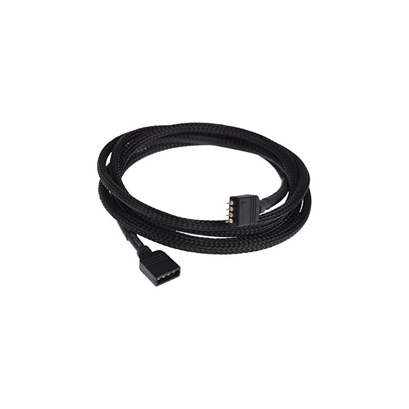 The area of application of our Phobya RGB FlexLights is already very large, but these extensions allow you to expand the areas once again. With this 1.50 metre extension, the RGB FlexLights can be brought to almost all corners of a room, whether as a Christmas decoration or as backlights behind the TV. Sleeving: This cable is not only functional, but also visually appealing. The surrounding mesh that wraps the actual cables is very dense and offers exactly the effect that the professional leever want: complete conversion of the cables to emphasise the uniqueness of its system even better! Particular attention was paid to the combination of the cable sheathing (the sleeve), the connector and the heat shrink tubing to give a uniform image. Sets: Phobya's goal is to meet the hobby and professional case modders a little bit. Sleeving is a lot of work and takes a lot of time, so you can now convert your complete system with Phobya cables as you like, just by simply changing cables. Technical data: length: 1.50 m, colour: black, box contents: 1x Phobya RGB 4-pin extension 150 cm, black, 1x Phobya connector for RGB flex lights.