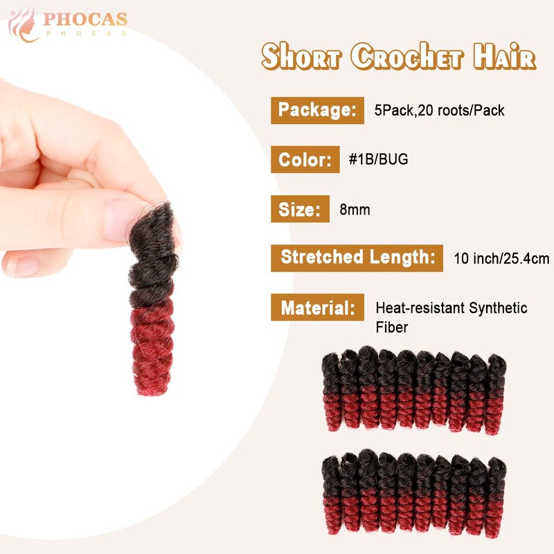 PHOCAS 5Packs 10'' Short Crochet Hair Crochet Braids for Black Women Natural Black to BUG
