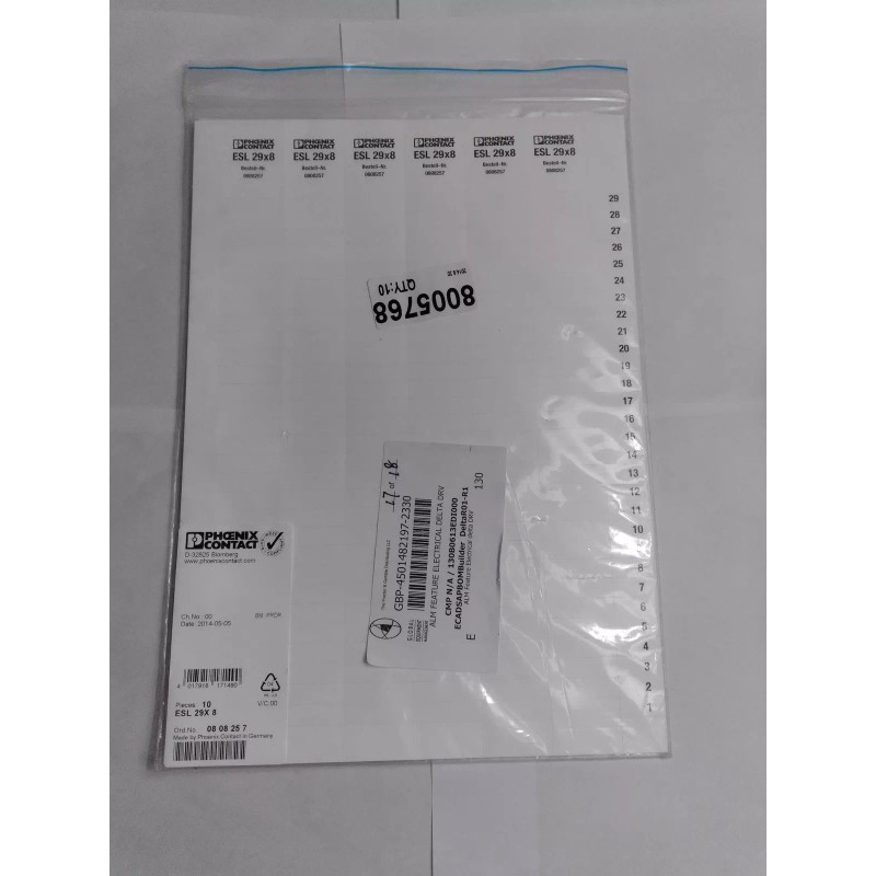 PHOENIX ESL 29X8 Insert strip - Sheet - white - unlabeled 10 Sheets