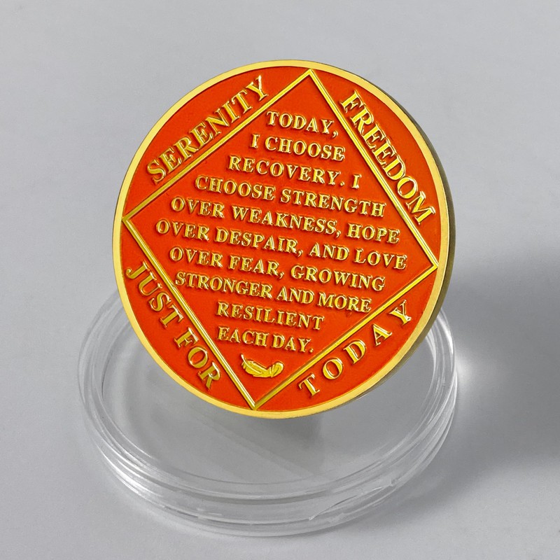 - Sobriety Prayer: the back of the Phoenix NA Chip features the rhombus-shaped logo representing Narcotics Anonymous, “SERENITY - FREEDOM - JUST FOR TODAY,” which emphasizes the importance of serenity and freedom in the recovery process. “TODAY, I CHOOSE RECOVERY, I CHOOSE STRENGTH OVER WEAKNESS, HOPE OVER DESPAIR, AND LOVE OVER FEAR, GROWING STRONGER AND MORE RESILIENT EACH DAY. “This quote encourages us to take steps toward a stronger, more resilient version of ourselves