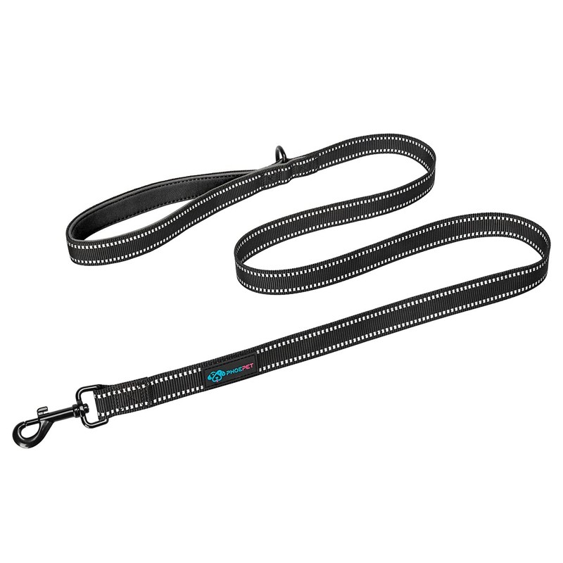 PHOEPET 5 Feet Heavy Duty Dog Leash - Reflective - Soft Padded Handle Traffic Grip for Extra Control (L,Black)
