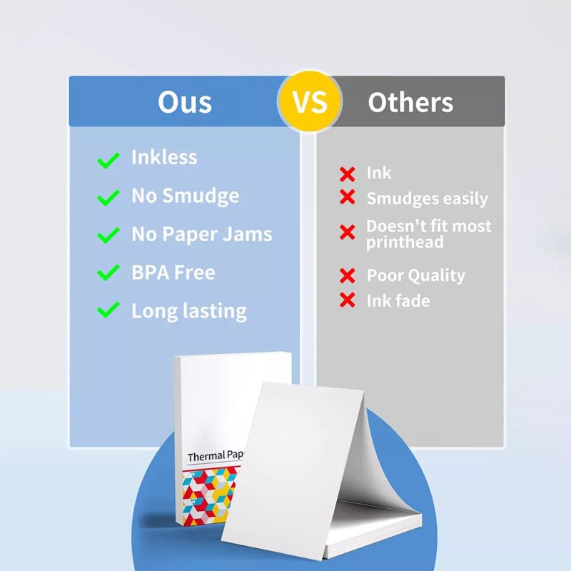 [High Quality Material] BPA/BPS Free, Phomemo thermal paper sturdy and durable, smooth and flat, no roughness.
