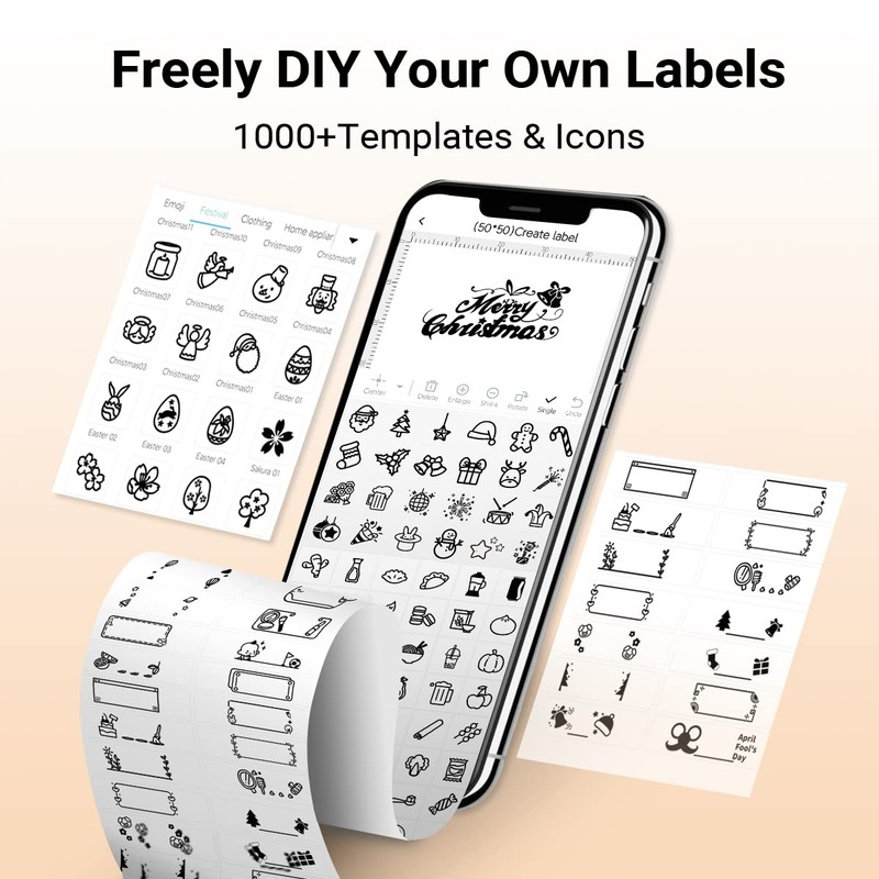 - Powerful APP Easy to Use- Phomemo M221 label maker machine works with our app “Print master”. More than 100+ free label templates, 13 languages, for printing text, barcode, Icon, picture, stickers, form. Freely edit your own labels. One click to batch printing, help your business more efficient.