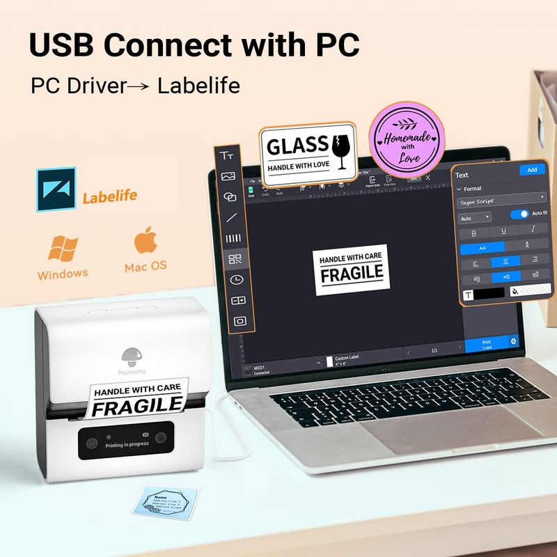 - Strong Compatibility- Bluetooth label maker connection with up to 33 feet range, 2 seconds to fast connect it. Stable Bluetooth 4.2 for phone and pads. M221 label maker also for USB connection for Mac OS and Windows 10. (Please follow the software installation guide).