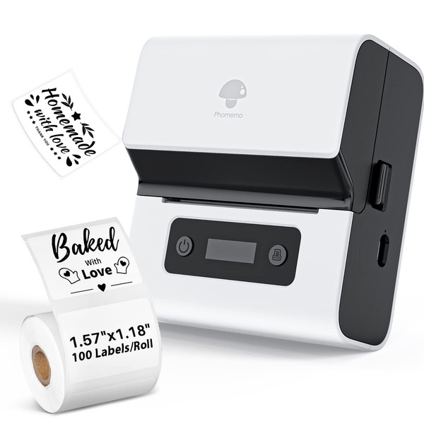 - Thermal Inkless Printer- Never need ink and toner. Phomemo M221 label maker only works with thermal paper. Energy Saving & Never Dirty Hands. With 1 roll sample label (100pcs 1.57"x1.18" labels). The labels are waterproof and oil-proof, easy to tear without leaving glue, a helpful assistant for home or business.