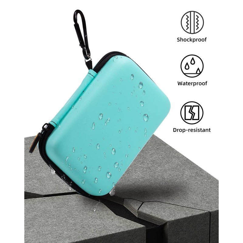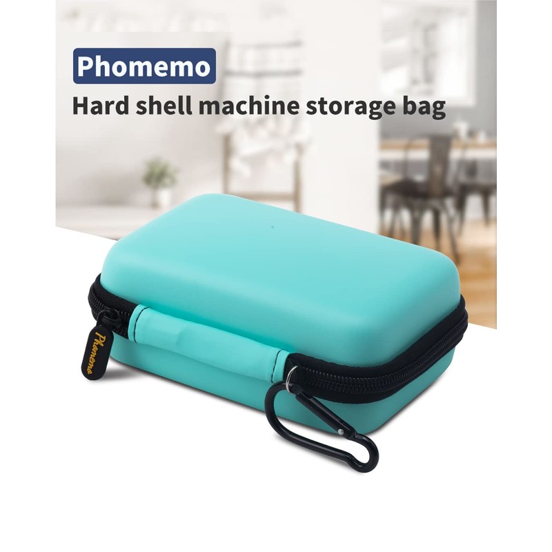 - [Storage bag size]- 100mm*150mm*60mm, can accommodate a printer and a small amount of paper rolls and an USB cable. Phomemo Mini Hard Shell Protection Box is waterproof, dustproof and shockproof. It has a built-in storage compartment and a bumper belt to effectively protect the printer from damage.