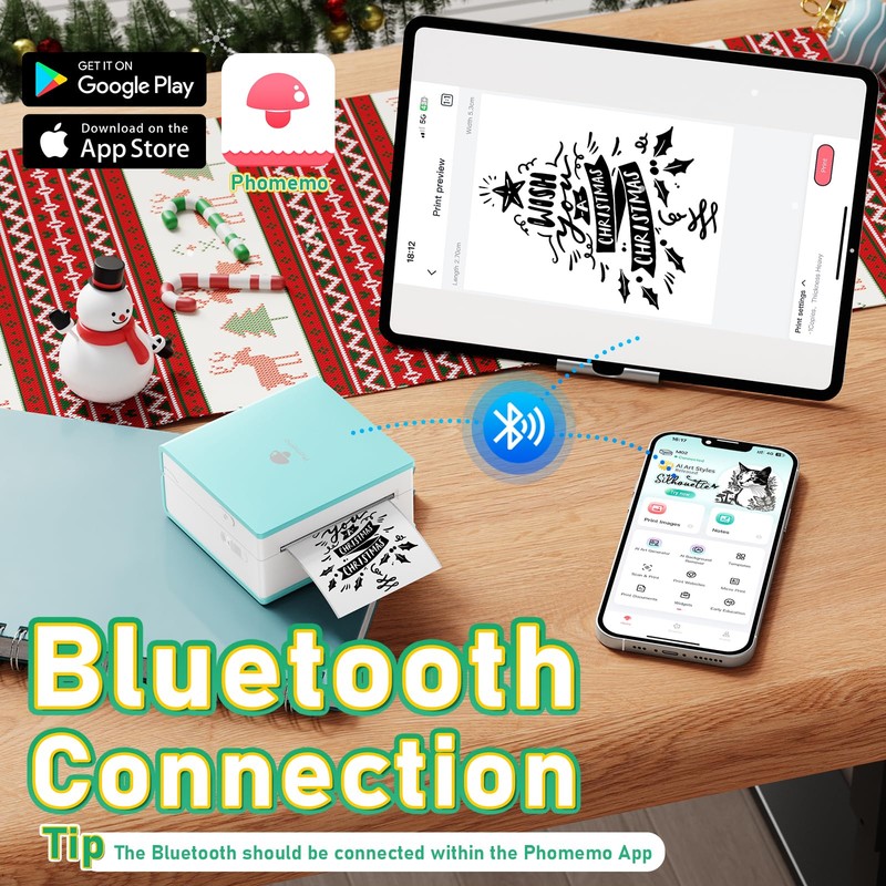 • Portable Size and Fashion Design- M02 pocket printer simple stylish shape, mini size (3.3 * 3.2 * 1.6 inch) slips neatly into your pocket. This sticker printer is ideal for Halloween, Thanksgiving day and holiday present to family and friends