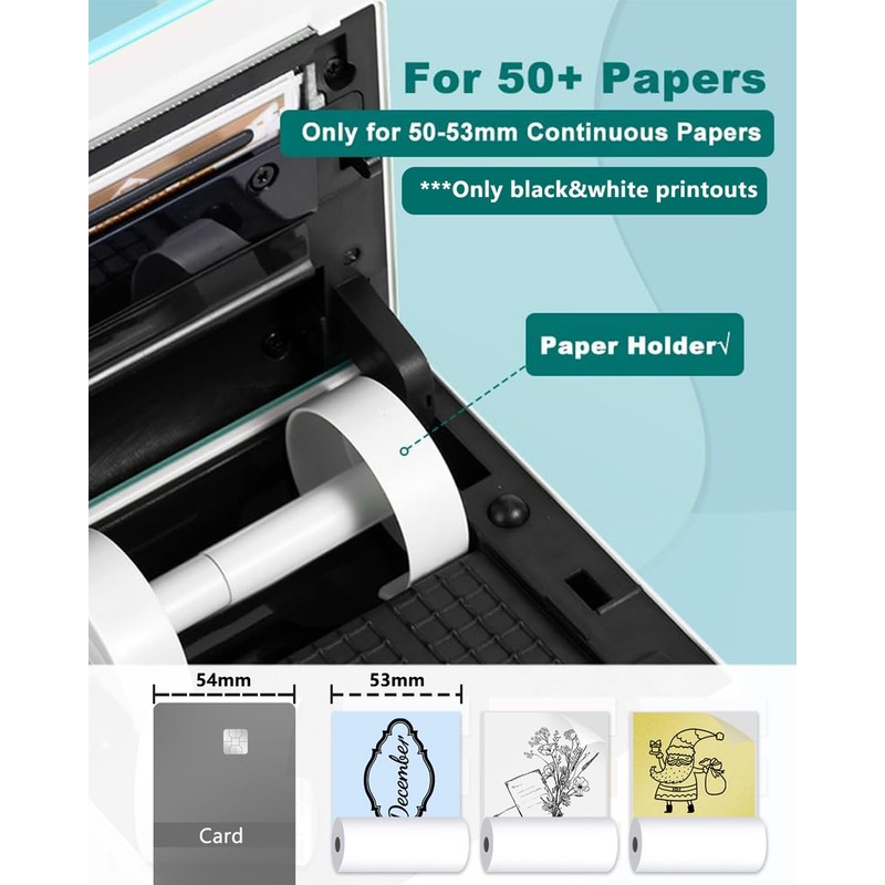 • Mini Mobile Printer with Powerful APP- one-click printing, saving time and effort, phomemo M02 note printer can print photos and text instantly, phomemo app offers variety of fonts, filter effects and themes, makes your black and white image more HD.