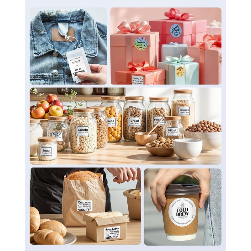 - Versatile Use Cases: Ideal for home organization (jars, bottles, storage boxes, food containers), small businesses (shipping addresses, product information, QR codes, brand logos), and school or office supplies (name tags, folders, documents). This 2 inch label printer is perfect for creating address labels or any other customized labels.
