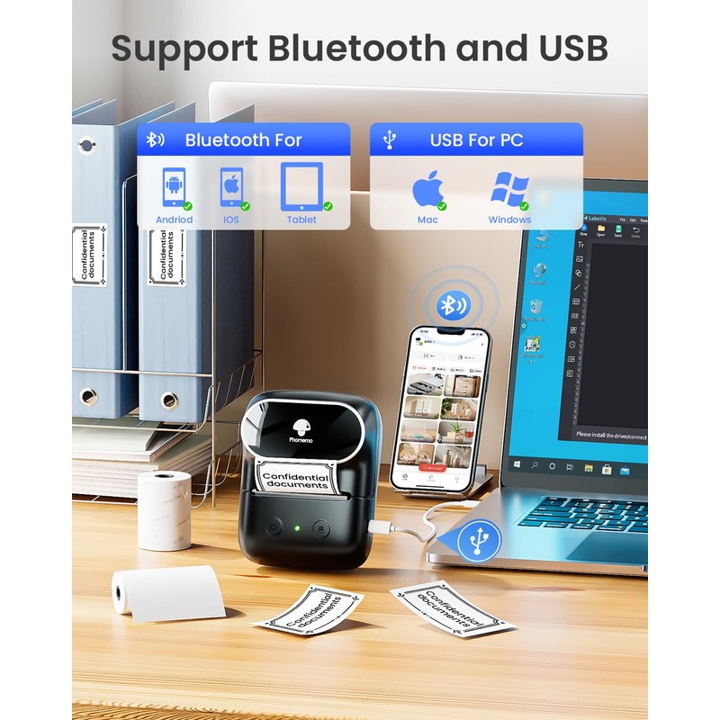 - Wide Compatibility: This bluetooth label printer supports iOS and Android mobile systems, as well as Windows and Mac computers. Whether you are using a pocket printer or a more traditional label printer machine, it connects wirelessly via Bluetooth or directly via USB for convenient printing.
