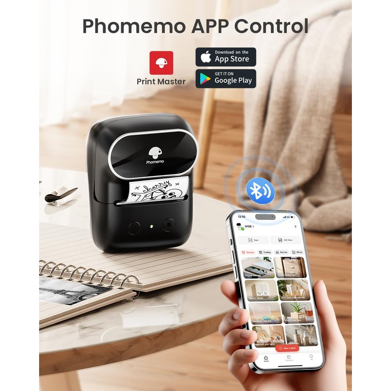 - Powerful App: Use the "Print Master" app with your sticker printer, which includes over 1000 icons, 300 templates, and 100 fonts. This feature allows you to easily design personalized labels using this label printer machine.