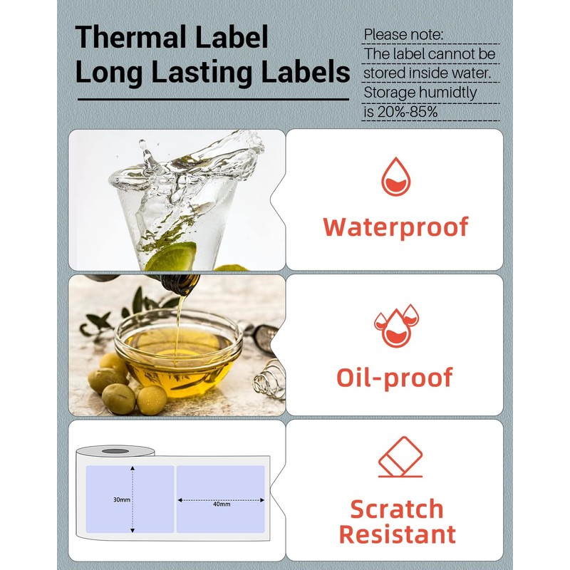 • √ Clear Printing- Phomemo self-adhesive Multi-Purpose labels are water resistant, oil resistant, abrasion resistant and strong adhesion