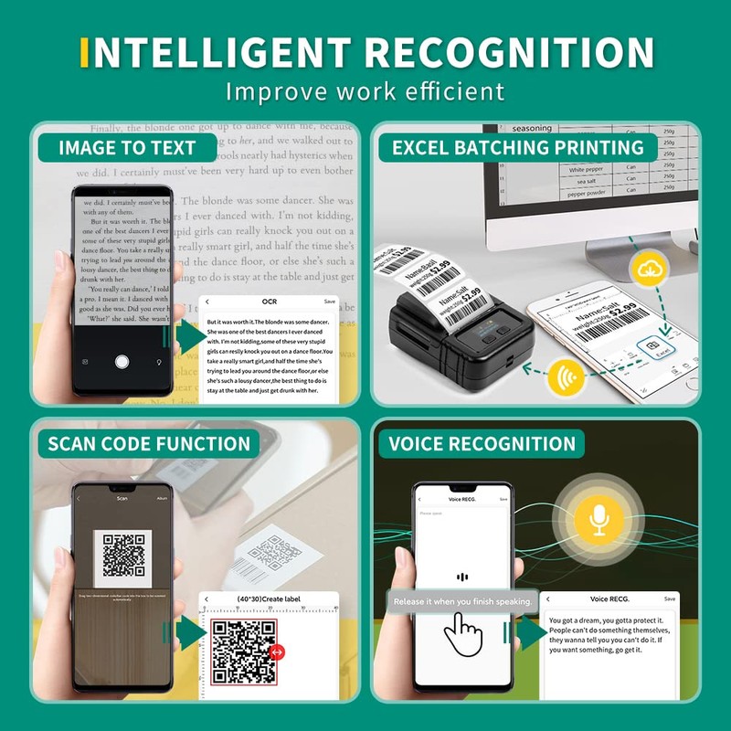 - 【Newly Bluetooth Label Printer】M120 barcode label printer are bluetooth wireless connection and using thermal printing technology which are no ink or toner needed. And this bluetooth label maker machine can print QR codes, small adress label and image.It's ideal for starting your small business.