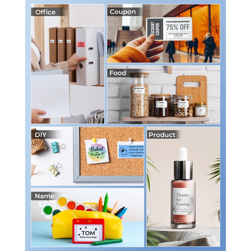 1 roll 1.57"x1.18" white label tape for Phomemo M220 label maker. This label paper is non-toxic, waterproof, oil-resistant, tear-resistant, and scratch-resistant.