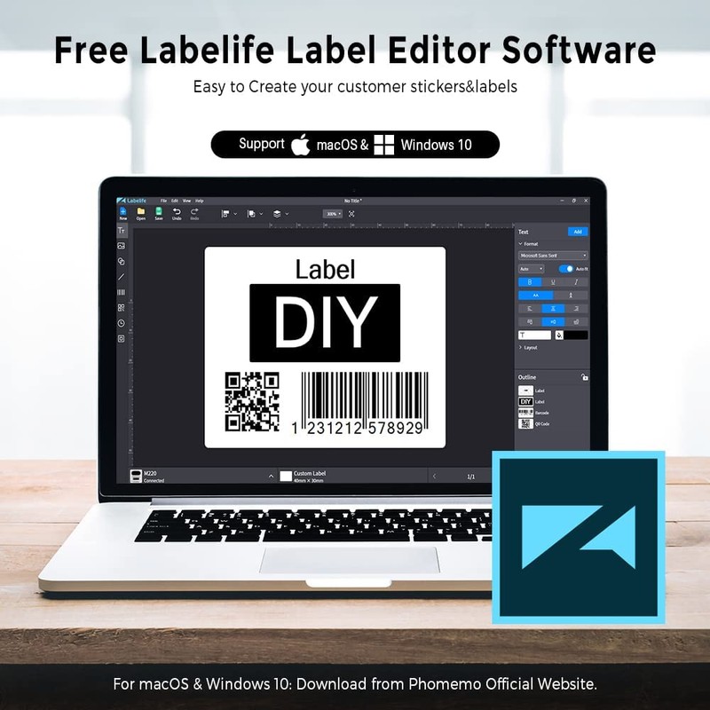 Easy Connection - For Wireless Bluetooth Connection, please connect the printer to your phone via the"Print Master" APP, then you would be able to create a new label, customizing the correct size and pattern! For PC(Windows 10 & Mac OS) connection, please connect the printer to your PC with the USB cord included in the package. Labelife could be downloaded from Phomemo official website.