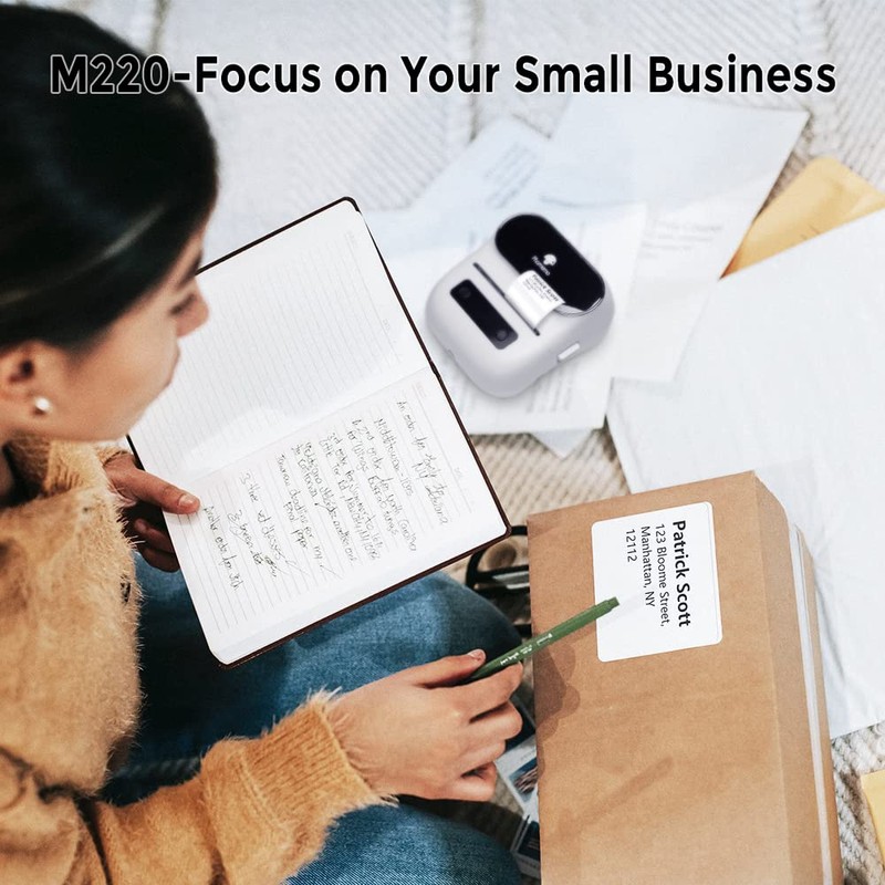 - Thermal Bluetooth Label Printer - Never need the ink, toner, and ribbon again. Phomemo M220 barcode label printer prints using thermal technology, meaning you only need to restock on labels, Phomemo M220 label maker machine come with 100pcs 1.57"x1.18" label tapes.
