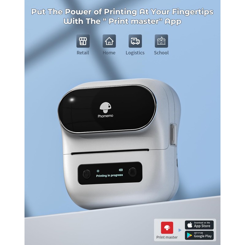 - Powerful APP - Phomemo's R&D team create the Print Master APP for you, with a variety of built-in functions. One-click use: text, pictures, barcodes, QR codes, OCR, Form, hundreds of icons, and many pre-made templates for commercial and home use. Improve your efficiency.