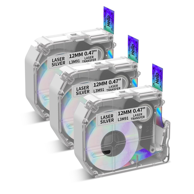 Phomemo M960 M950 Label Tape x 3 - Laser Tapes, Compatible with Brother P-Touch M Tape, 12mm x 4m,Compatible with Brother PT-M95 PT-85 PT-70BM PT-90 PT-65 Label Maker (Black on Laser Silver Bottom)