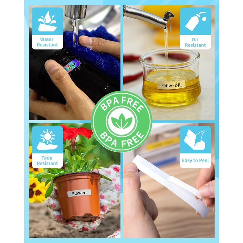 - Maintain a Tidy Kitchen: Our waterproof and oil-resistant label tape is the good chioce for organizing your kitchen. It can be used to label spices, oils, salt, sugar and other condiments, ensuring that the labels remain uncontaminated