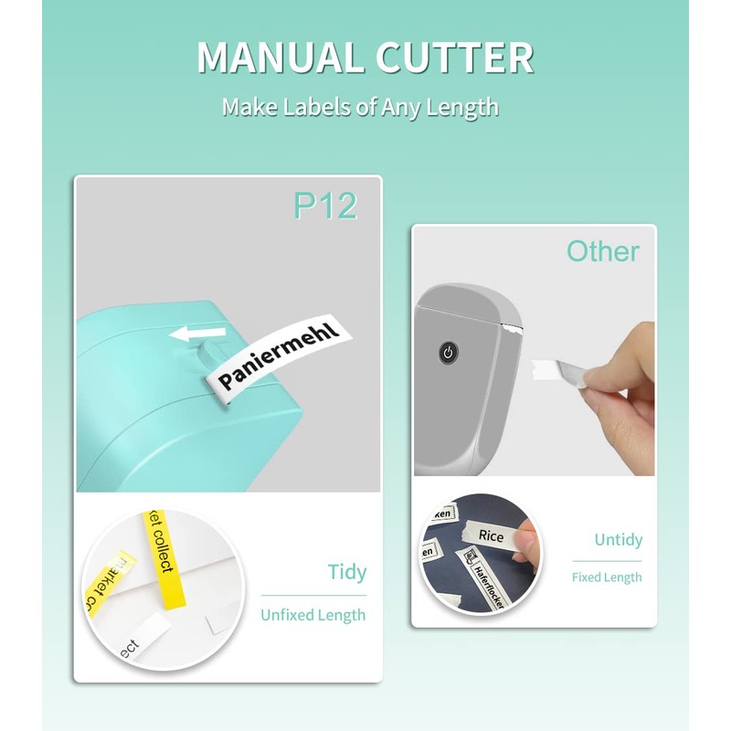 Phomemo P12 Mini Bluetooth Label Maker with Label Tape, Thermal Label Printer for Home and Office, Portable, for Android and iOS, Turquoise