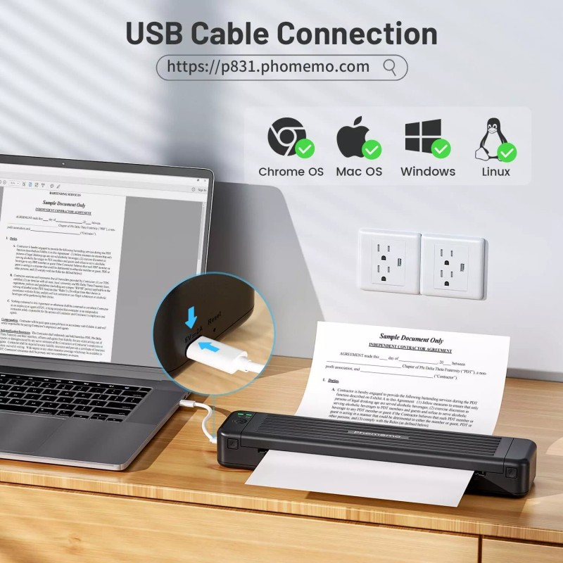 【Strong Compatibility & Duplex Printing】: The P831 wireless printer support print on regular A4/A5/B5,And can print double-sided 【TWO Printing modes】 1.The p831 printer can printing on regular paper printing when using thermal transfer ribbon. 2.When the thermal transfer ribbon is not installed the P831 Mobile printer can transform into a thermal printer. Just use thermal paper can direct printing. the P831 can also be used as a tattoo stencil printer, enabling you to print stunning designs on tattoo transfer paper.