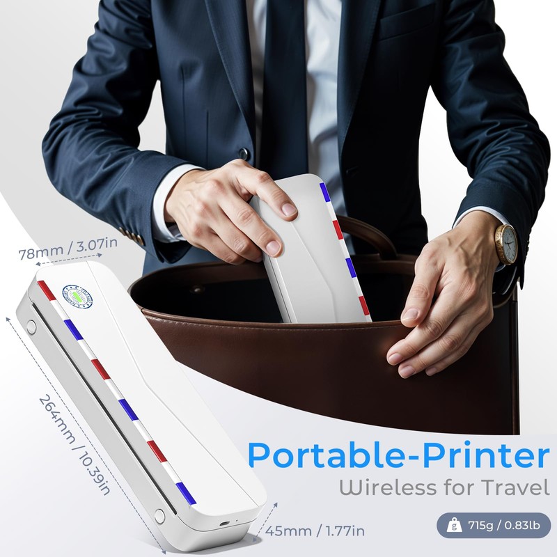 - Portable and Compact Printer - Phomemo Portable printer Weighing only 750g, which can be easily put into your bag to help you work anywhere. Additionally, the mini printer built-in upgrade 2600mAh battery ensures uninterrupted use throughout the day. You can Print Anytime and Anywhere. Phomemo Portable printers wireless for travels, car and outdoor. M836 Mobile printer is well suited for office worker, students, children, business traveler, truck driver, mobile notary, teachers, etc