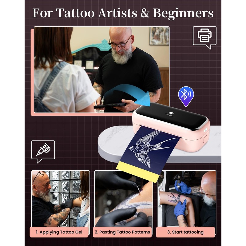 - Inkless Thermal Tattoo Printer: Phomemo TP31 wireless tattoo stencil printer adopts advanced thermal technology to print clear and precise patterns and lines. No ink clogging or jamming problems