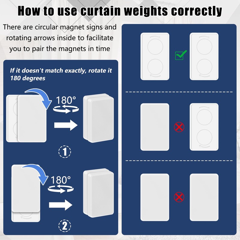 - Keep Curtains Neat: Unlike ordinary curtain magnets that can stick together at the bottom of the curtain—leading to an unnatural droop—we have designed our single-sided magnetic curtain weights to effectively prevent this issue. They can help you keep your curtains clean and tidy while enhancing the aesthetics of your home