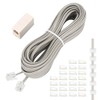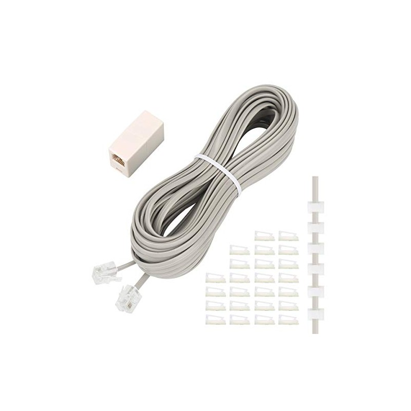 Phone Extension Cord 33 Ft, Telephone Cable with Standard RJ11 Plug and 1 in-Line Couplers and 20 Cable Clip Holders, Grey
