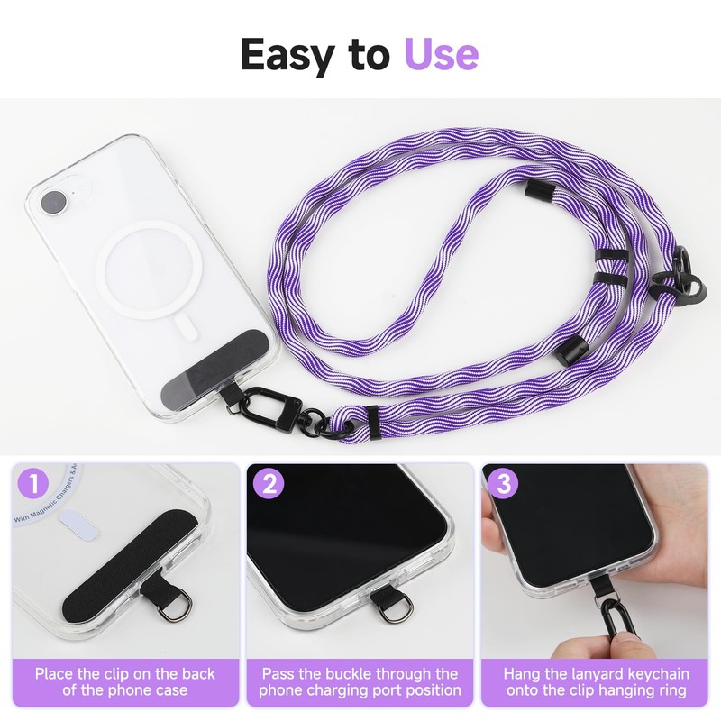 - [Versatile use] Whether for commuting, events, or outdoor activities, this phone strap crossbody design offers hands-free ease. Securely hold your phone, ID, or keys with this practical phone lanyard for iPhone and other devices.