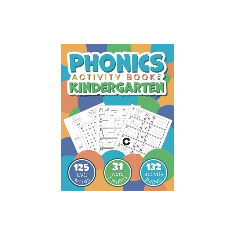 Phonics Activity Book for Kindergarten: Learn to Read, Spell, and Write Short Vowel CVC Word Families | Built-in Reward System and Game | Ages 4-7 | Black & White Edition