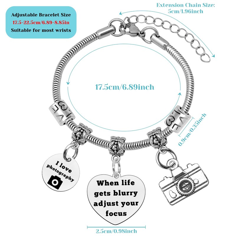 - Camera Lovers Gift: Special design for your Photographer, photo clubs, photo lovers. Inspirational gift for daughter, son, boyfriend, girlfriend, wife, husband, best friends and etc. The camera jewelry is the perfect friendship gift for the special photographer friend in your life. It will be the perfect gift for Birthdays, Christmas, Thanksgiving Day, Teachers' Day, Mother's Day, Valentine's Day, and retirement. The cute camera bracelet is the perfect gift for any keen photographer.