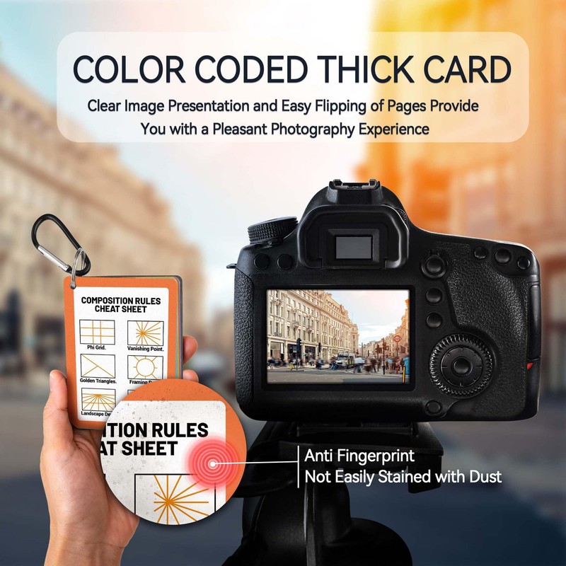 - Quick Reference Photography Cards: Covering 95% of photography scenarios with easy-to-understand graphics and text, suitable for outdoor or travel, day or night. Helping you find the best camera settings quickly in your daily shooting. Perfect for beginners and intermediates to make your photography works stand out.