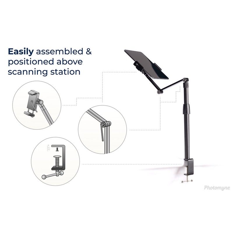 • Hands Free Device Stand - Our phone and tablet arm mount lets you have that hands-free photo scanning, video recording, and watching experience. It holds your device secure, so you won't tire your arms.