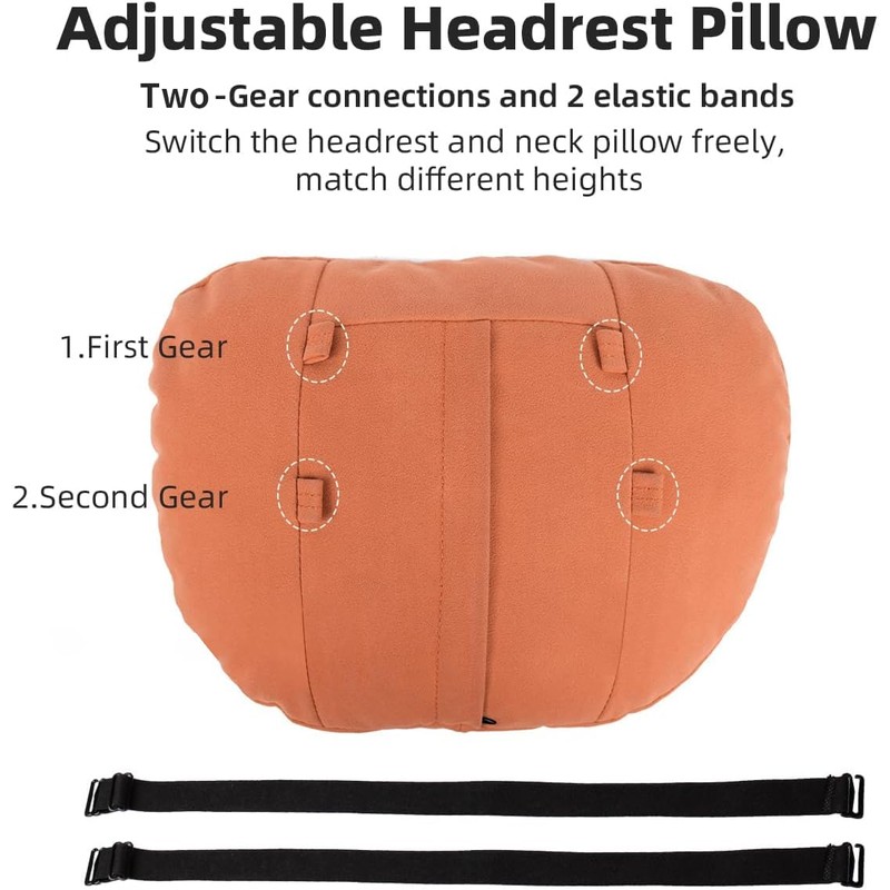 - 【Three level adjustment】: This headrest neck pillow has three different adjustment positions on the back, with two elastic straps attached, allowing you to freely choose different positions to adjust the height; Or freely choose to use it as a headrest or neck pillow.