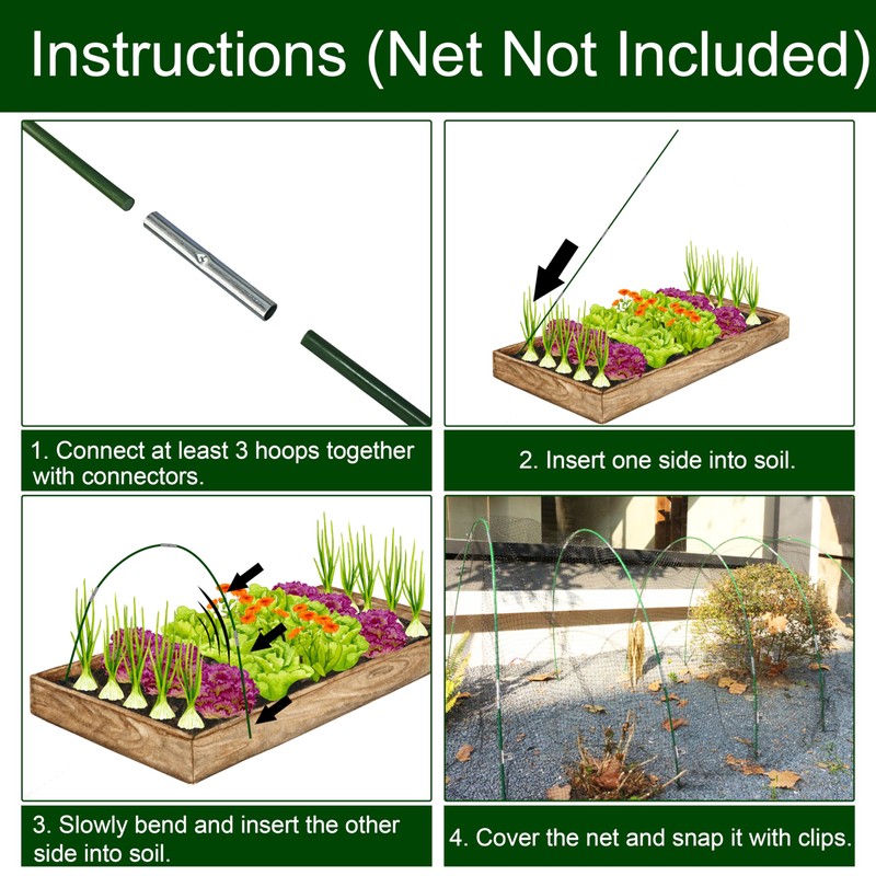 • Protect Your Plants Year-Round - These garden hoops are designed to provide year-round protection for your plants. They can be used with various covers such as plant covers, garden netting, frost cloth, and sun shade cloth. No matter the season, our garden hoops will help shield your plants from harsh weather conditions, pests, and birds.