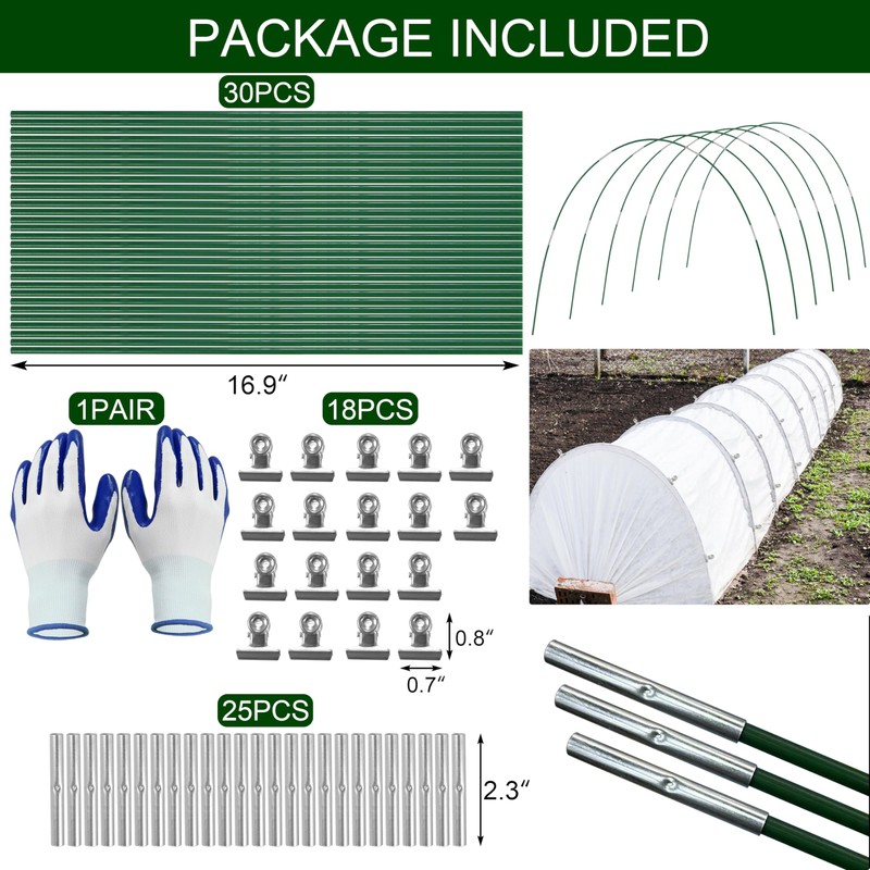 • Reusable - The rods are 17" in length and can be easily connected and bent to any width and height you desire. After harvesting vegetables, you are able to take the hoops apart and will be able to use them again next growing season.