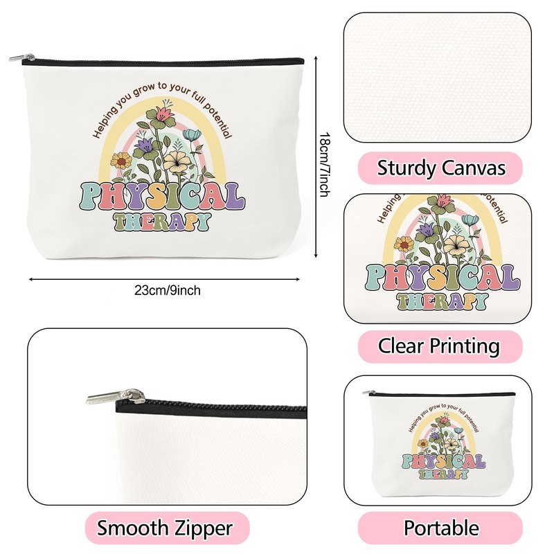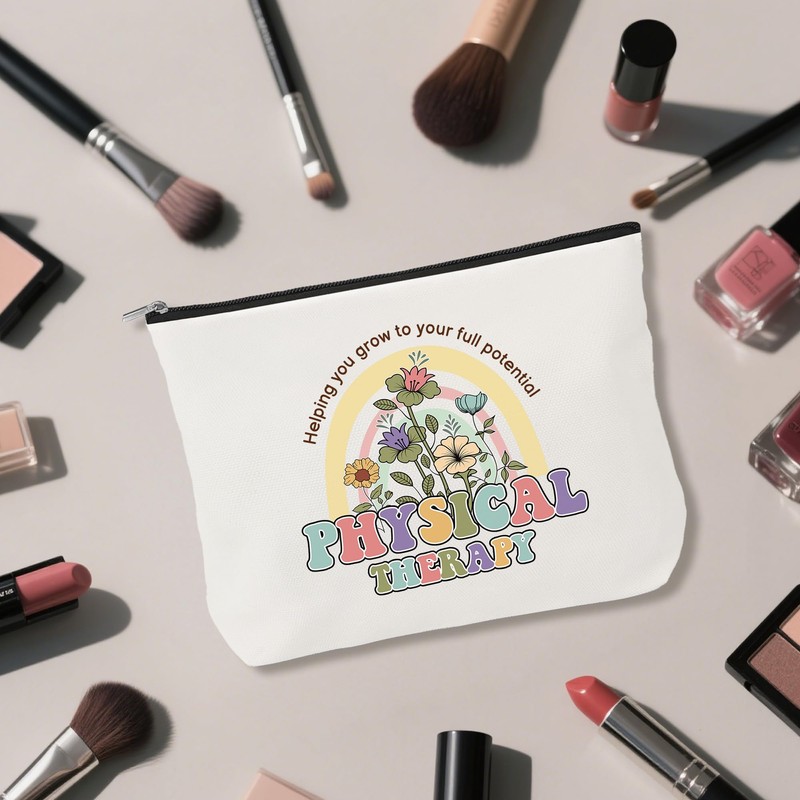 Physical Therapist Gifts for Women Small Makeup Bags Cosmetic Bag Flower Therapist Motivational Inspirational Gifts for Friends Coworkers Birthday Christmas Thanksgiving Gift for Women