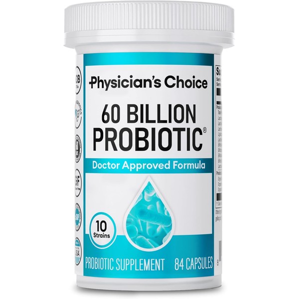 Physician's CHOICE Probiotics 60 Billion CFU - 10 Strains + Organic Prebiotics - Immune, Digestive & Gut Health - Supports Occasional Constipation, Diarrhea, Gas & Bloating - for Women & Men - 84ct