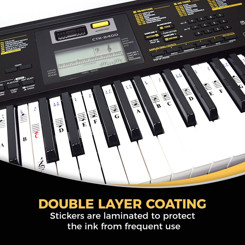 - EYE-CATCHING DESIGN: The labels are especially designed to keep your eyes on the notes while you play. It makes learning the notes easy and speeds memory of the keys.