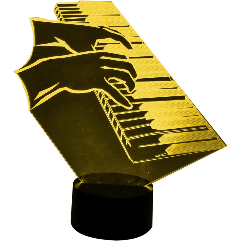 Piano Keyboard W. Hands - 3D LED LAMP Optical Illusion Light with 7 Color Changing Lighting Effects