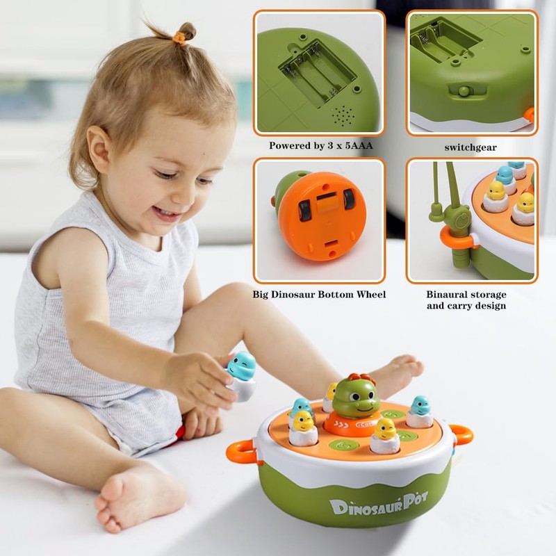 - Fun dinosaur operation games: the "Fun Dinosaur Operation Games" rotates a game board on which mini dinosaur eggs are randomly thrown off. The children then catch the flying dinosaurs with nets, improving their reaction and hand-eye coordination.