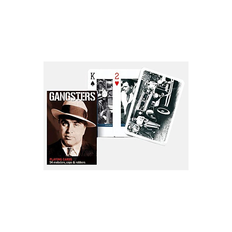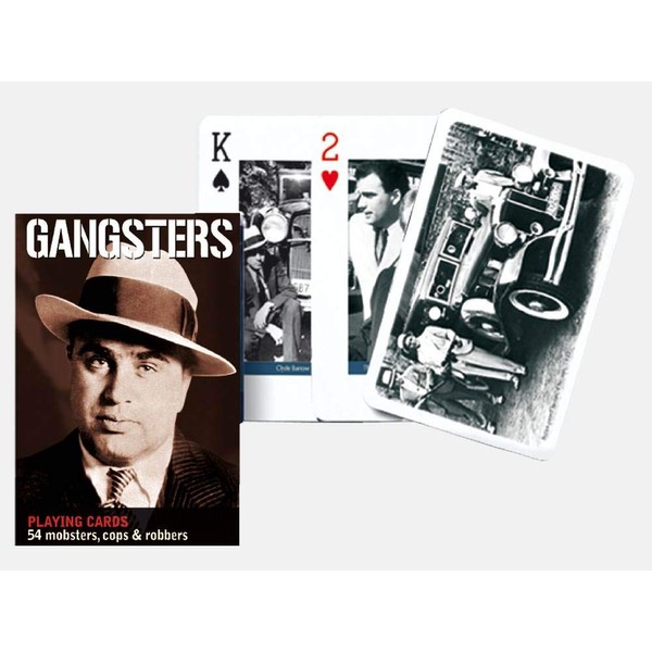 Gangster Playing Cards. It's a deal you can't refuse! Single deck of regulation playing cards features images of famous mobsters, gunmen, cops & robbers. You'll find classic crime photographs including Al Capone, infamous hitmen from Murder, Inc., and more! 54 mobster cards in the deck lets you play poker like a boss.