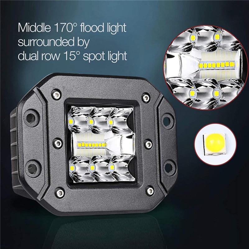 - ★ Excellent Brightness: With added led quantities, triple row design, and combination of flood &spot beam, the flush mount light pods emits a better and perfect 4200LM light to light up the entire road ahead of you, excellent visibility, no more afraid of darkness