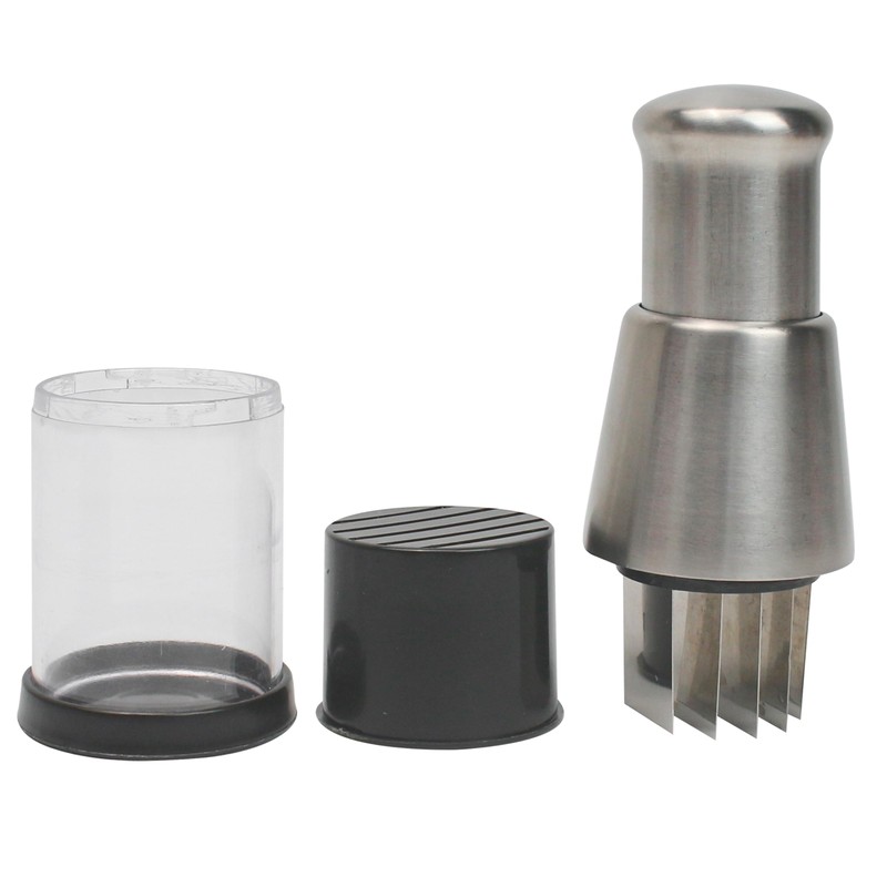 - Paquete: 1 unidad. Color: plateado. Tamaño: 16 x 5,5 x 5,5 cm. Material: plástico PP + hoja de corte de acero inoxidable 304. Este picador es una herramienta que puedes guardar en la cocina.